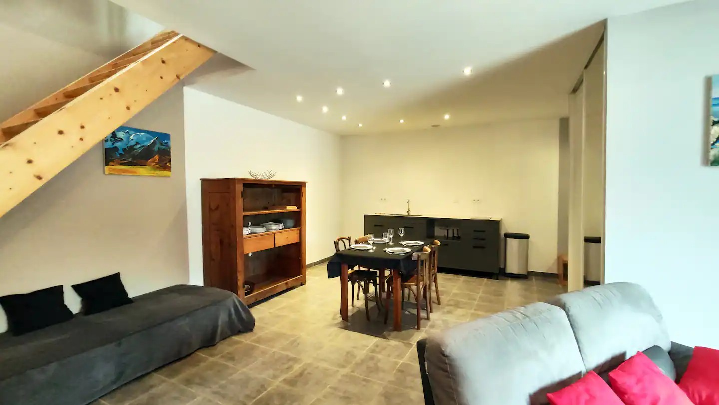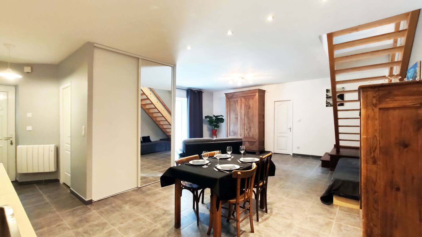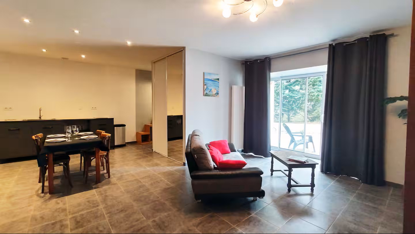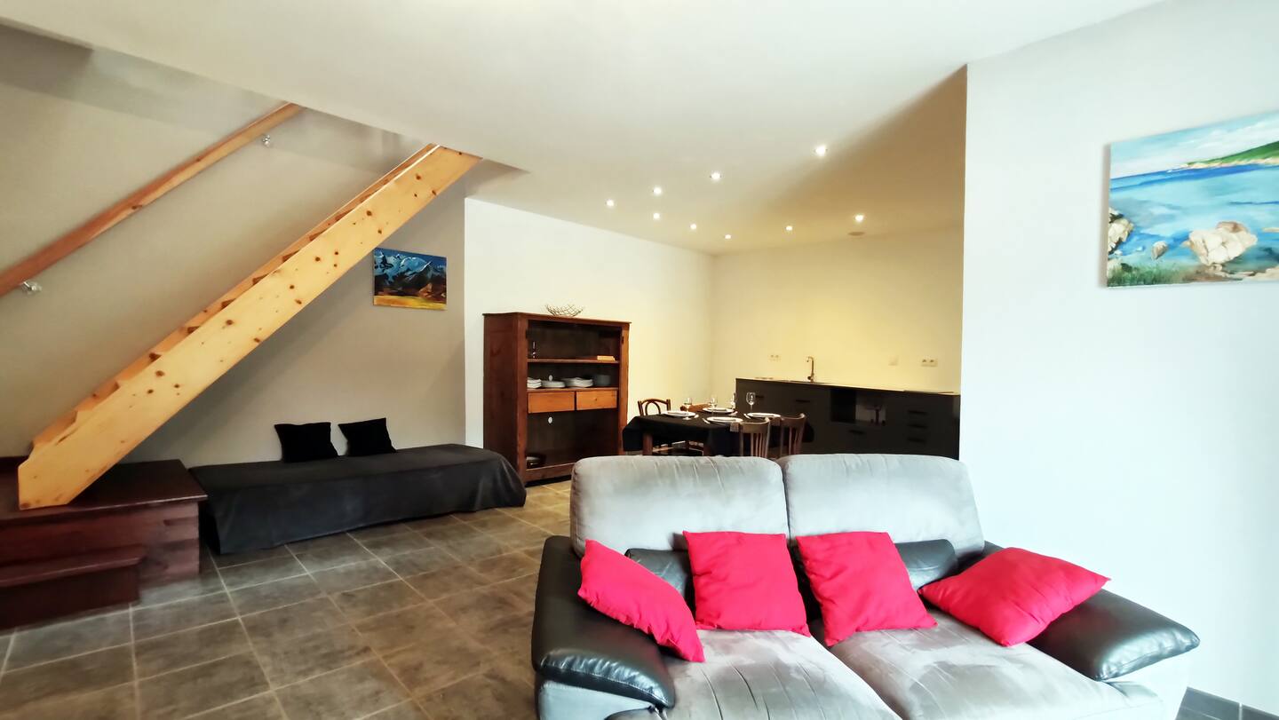 Séjour avec canapé et lit d'appoint, 2 chambre lit 140, 1 salle de bain (douche), WC, coin bureau.